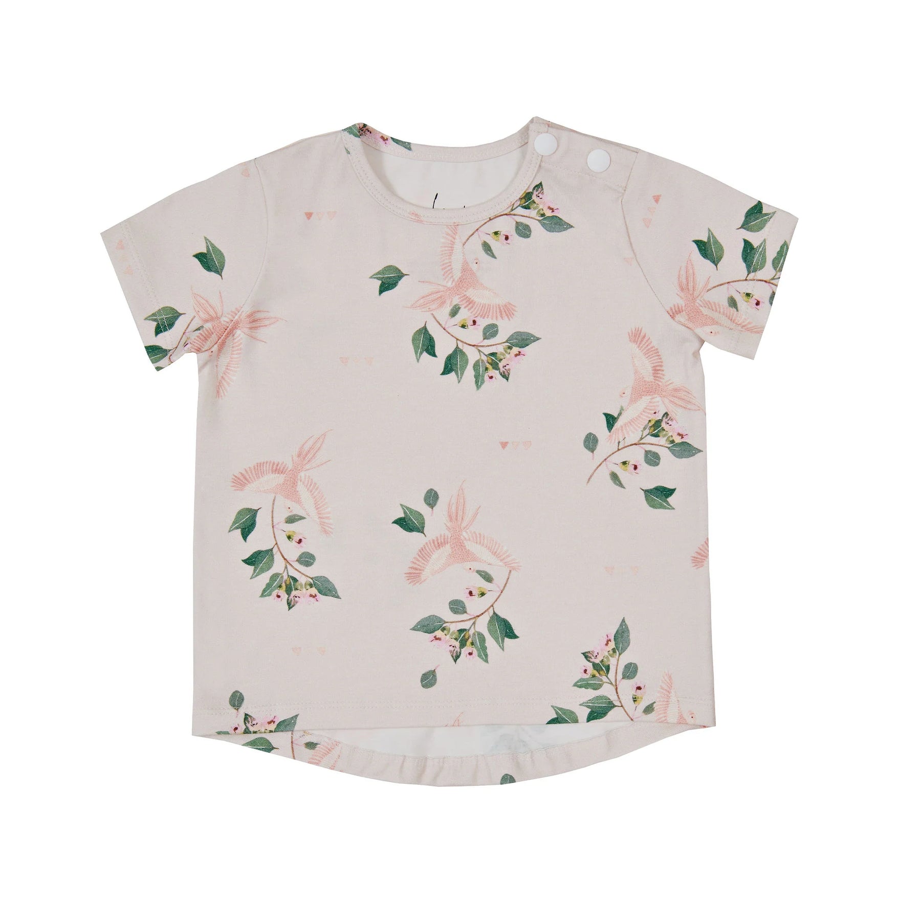 The uniquely designed beautiful bird & natives print. A soft pink blush colour, perfect for your little mini me.