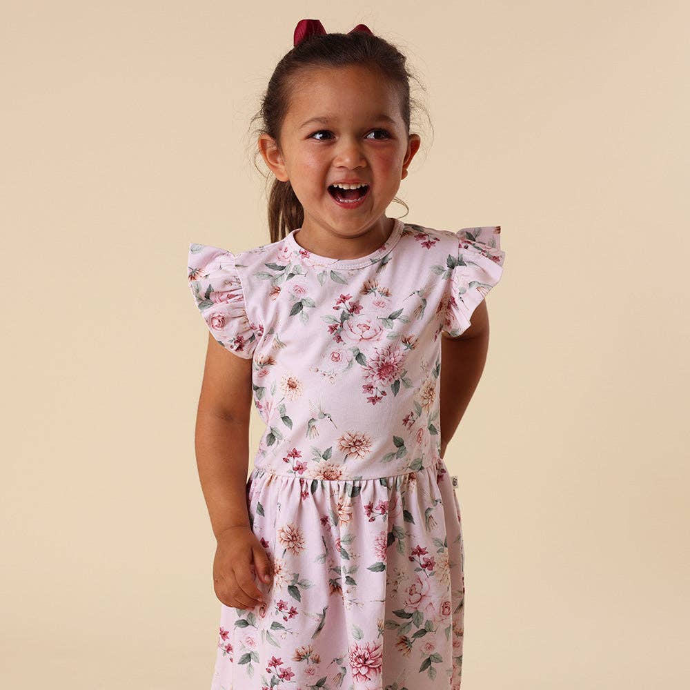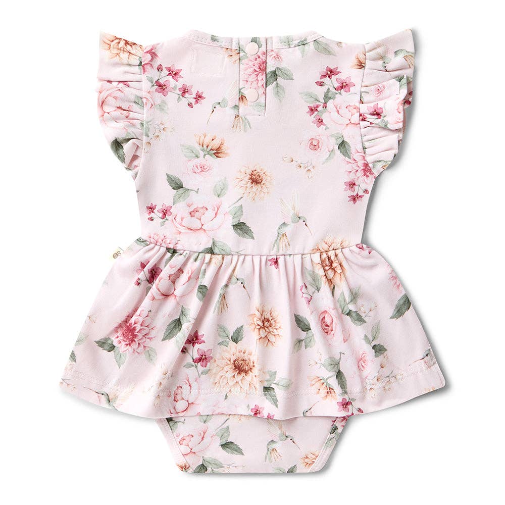 All Snuggle Hunny clothing is made with GOTS Certified Organic Cotton CU 1182228. Features Include: * Exclusive Birds & Blooms print * Frill detail on shoulders * Sleeveless * Sizing: 0-3 months to Size 6 * Soft and stretchy * Fitted bodice and flare skirt * Easy to wear * Lightweight and breathable * GOTS Certified Organic CU 1182228 * 95% Organic Cotton / 5% Elastane Designed in Australia. Made in India.