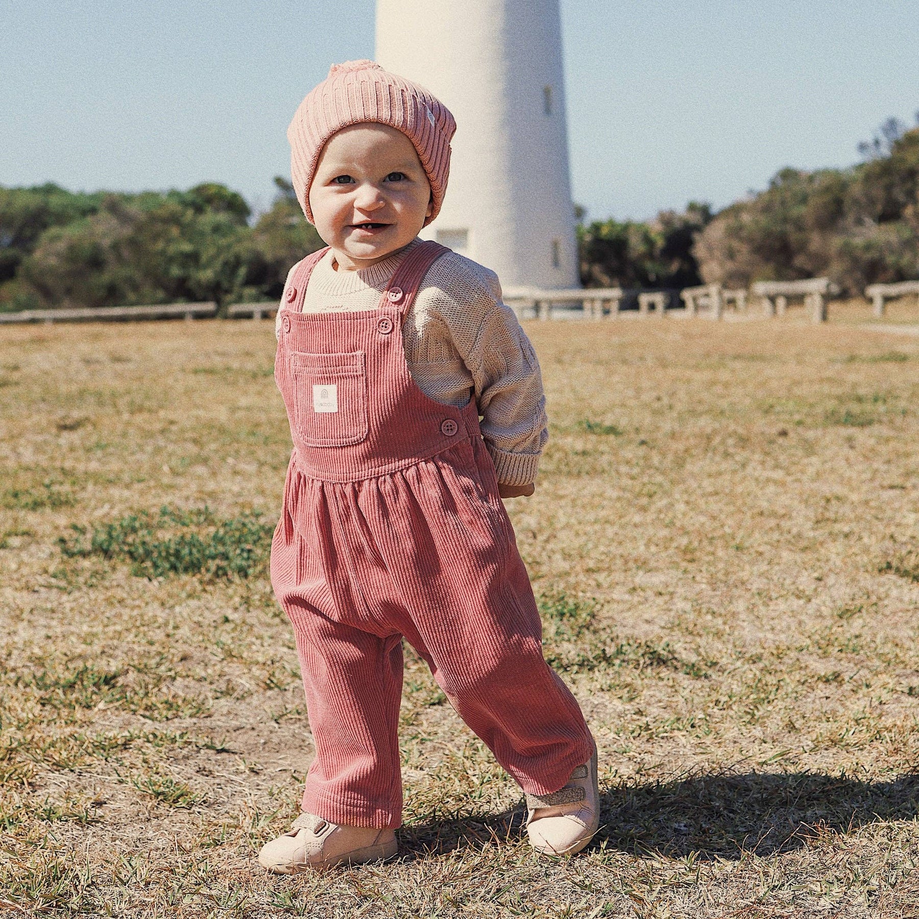 Key Features * 100% Cotton Corduroy * Cotton bib lining * Button closure at shoulder and side openings for ease of dressing * Inleg snap placket for ease of nappy change * Front bib pocket with Kynd logo badge * Relaxed fit * Designed in Australia