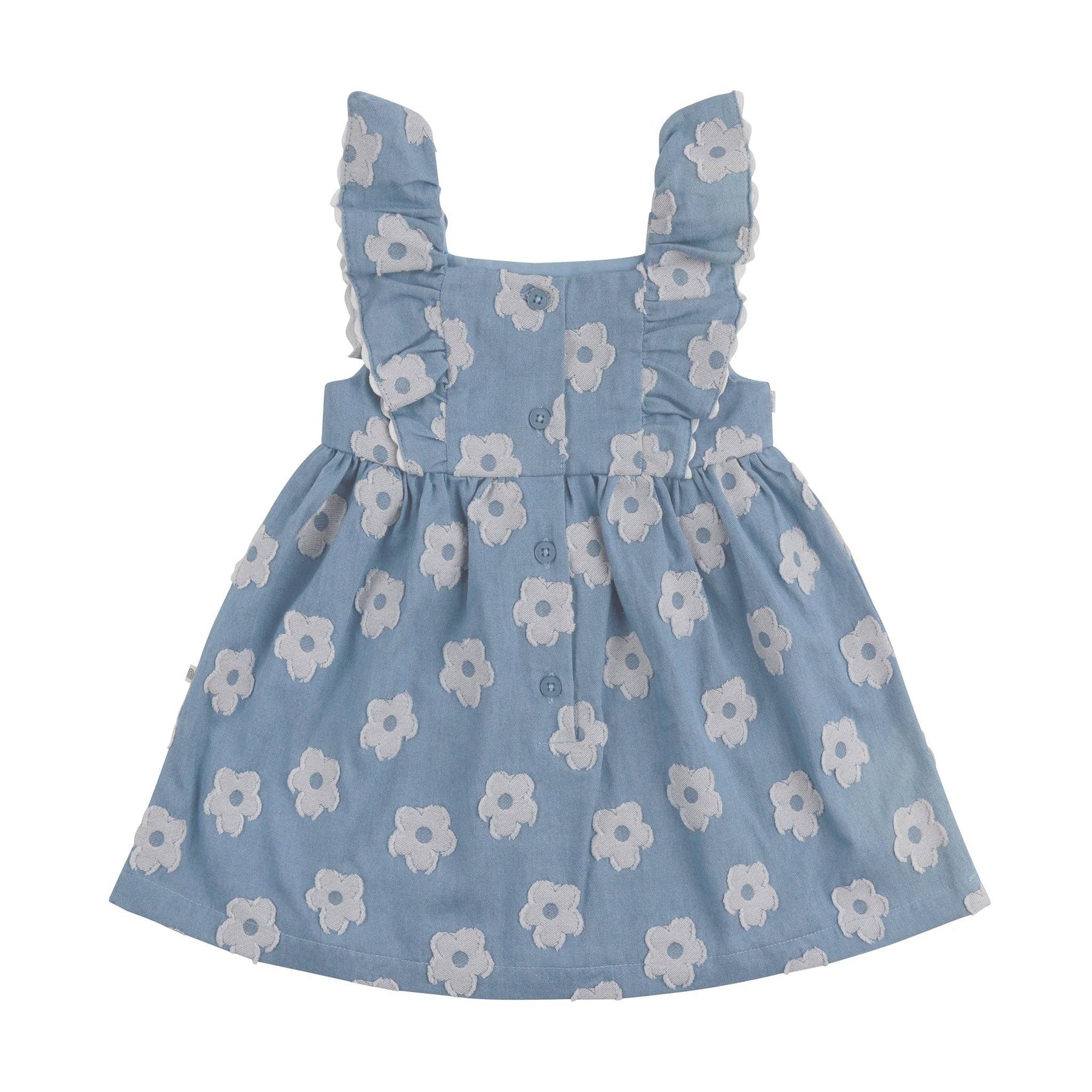 Made from breathable garment-washed cotton, our Chambray Dress blends sweet floral charm with everyday comfort. Back buttons and a breezy fit make it perfect for warm days, quick changes, and playful adventures!