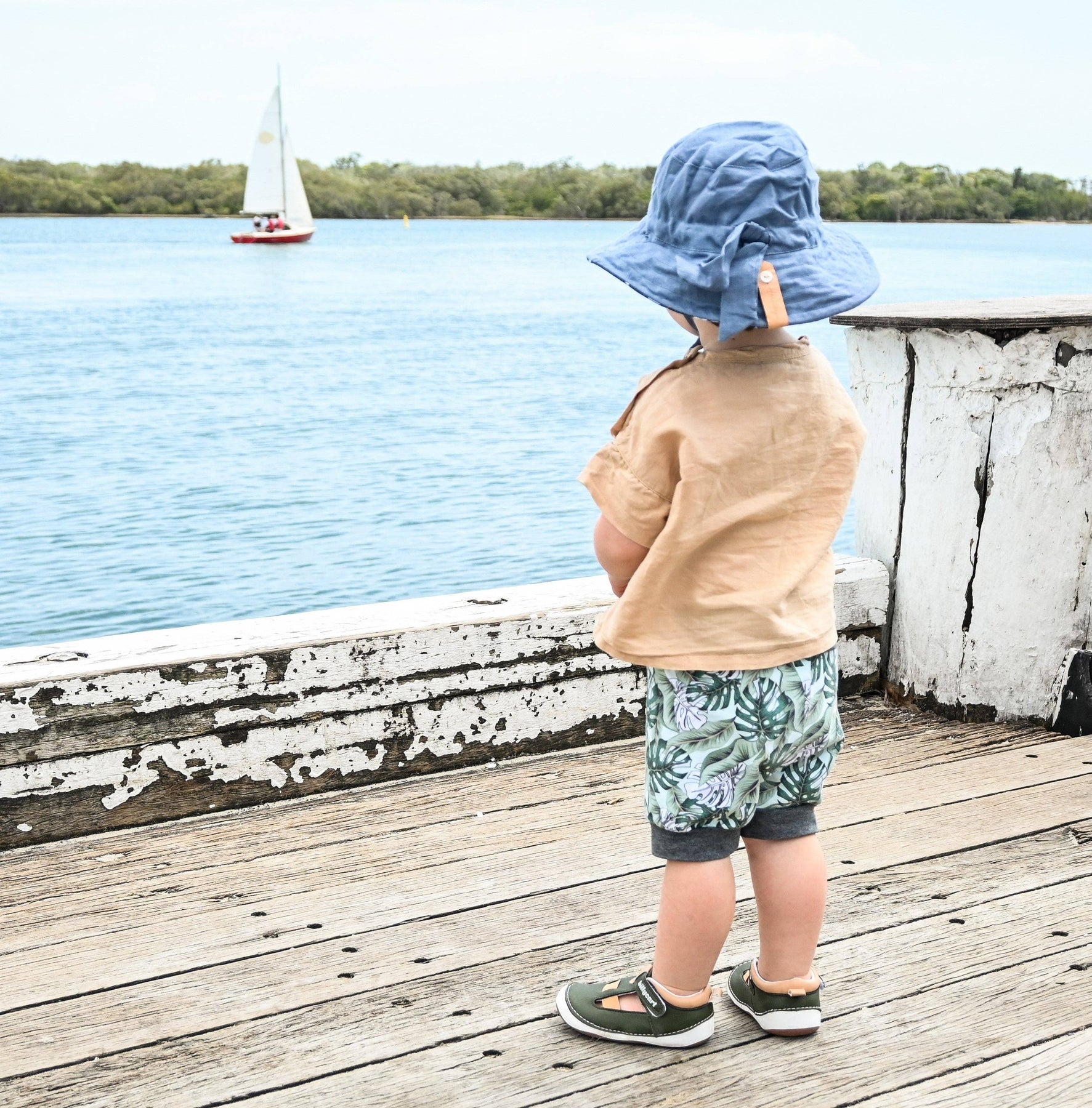 An extra wide fit for chubby little feet FORREST is one of our widest sandals. With elastic across the top, FORREST fits even the chubbiest and chunkiest of baby and toddler feet. With easy velcro straps, little ones can put their FORREST sandals on themselves (and they’ll feel so very proud when they do). And the protective closed toe means your little one can go on all sorts of adventures without stubbing their tiny toes. The soft, breathable mesh lining makes FORREST a dream to wear with or without socks. And the wipe-clean uppers and padded, machine washable inner sole means FORREST is easy to freshen up – perfect for daycare, the beach, the sandpit, the playground, anywhere! Kids and parents love FORREST, and we think you will too. Learn more about the importance of barefoot walking for babies and toddlers. Style, colour and fit Brand: Billycart Kids Style: Sandals with velcro ankle straps Colour: Green and Tan Manufactured sizes: 20 / 20.5 / 21.5 / 22.5 Restock Dates: Check FAQ Fit: Best