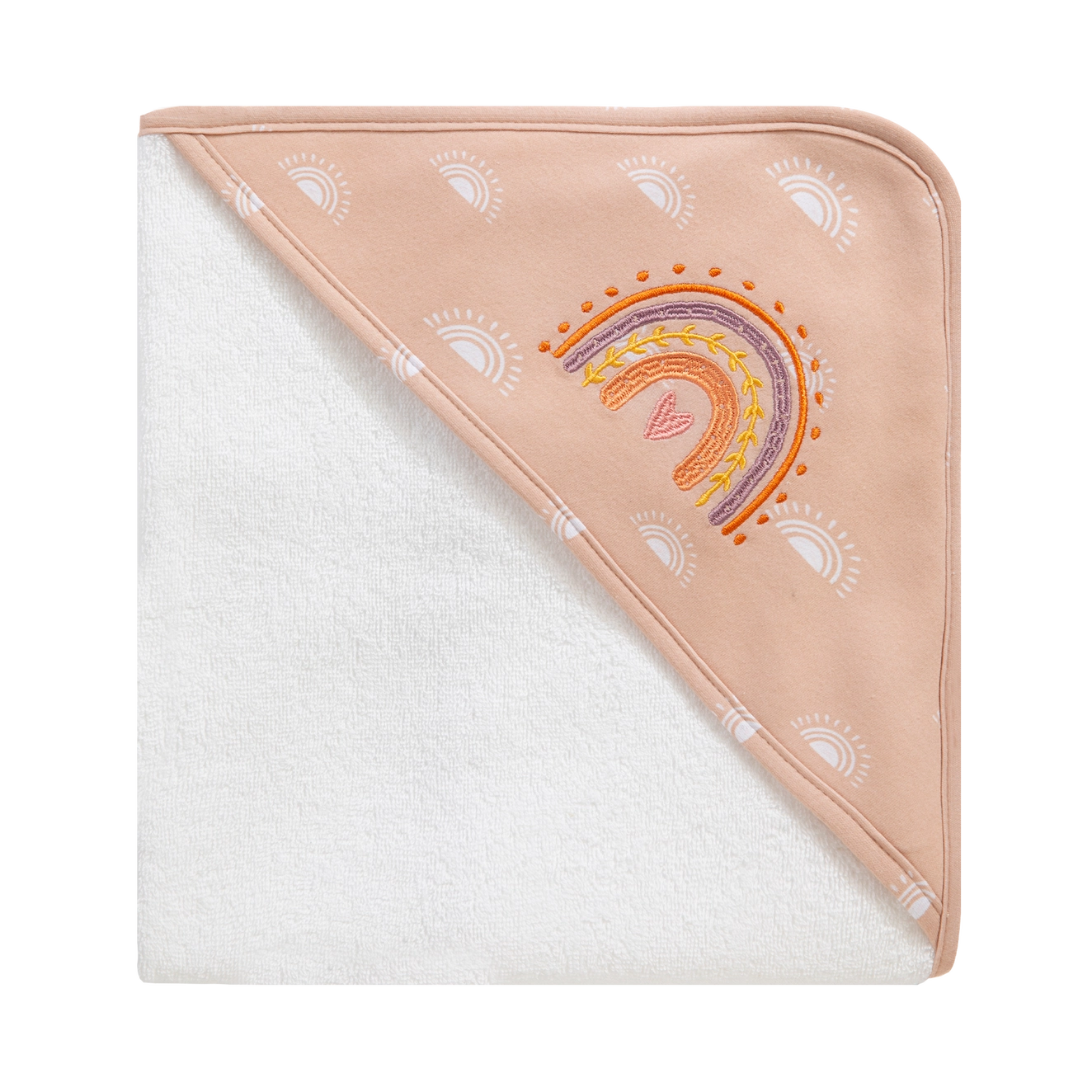 Add a touch of luxury to baby's bath time with this soft and fluffy 100% cotton baby hooded towel. Crafted from absorbent premium terry towelling and featuring a cotton jersey hood with sweet embroidery detail, this hooded towel is perfect for after-bath snuggles.
