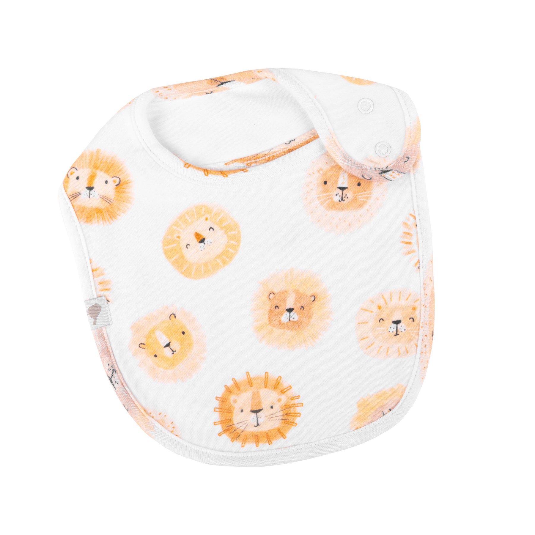 Made from soft organic cotton, this bib with two snap fasteners adjusts and allows for easy use and grows with your baby.