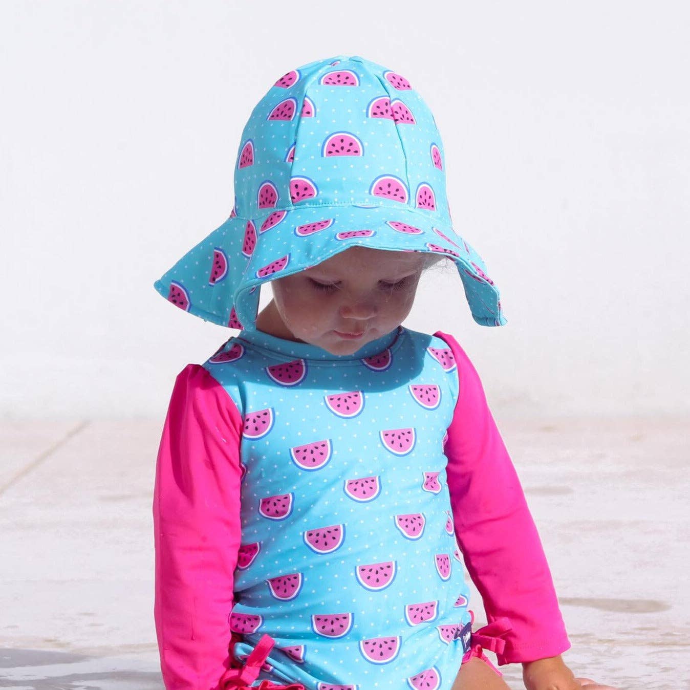 This practical and oohhh-so-cute baby swimming costume has a SNAP FASTENING to make on-the-go nappy changes and toilet training quick and easy.
