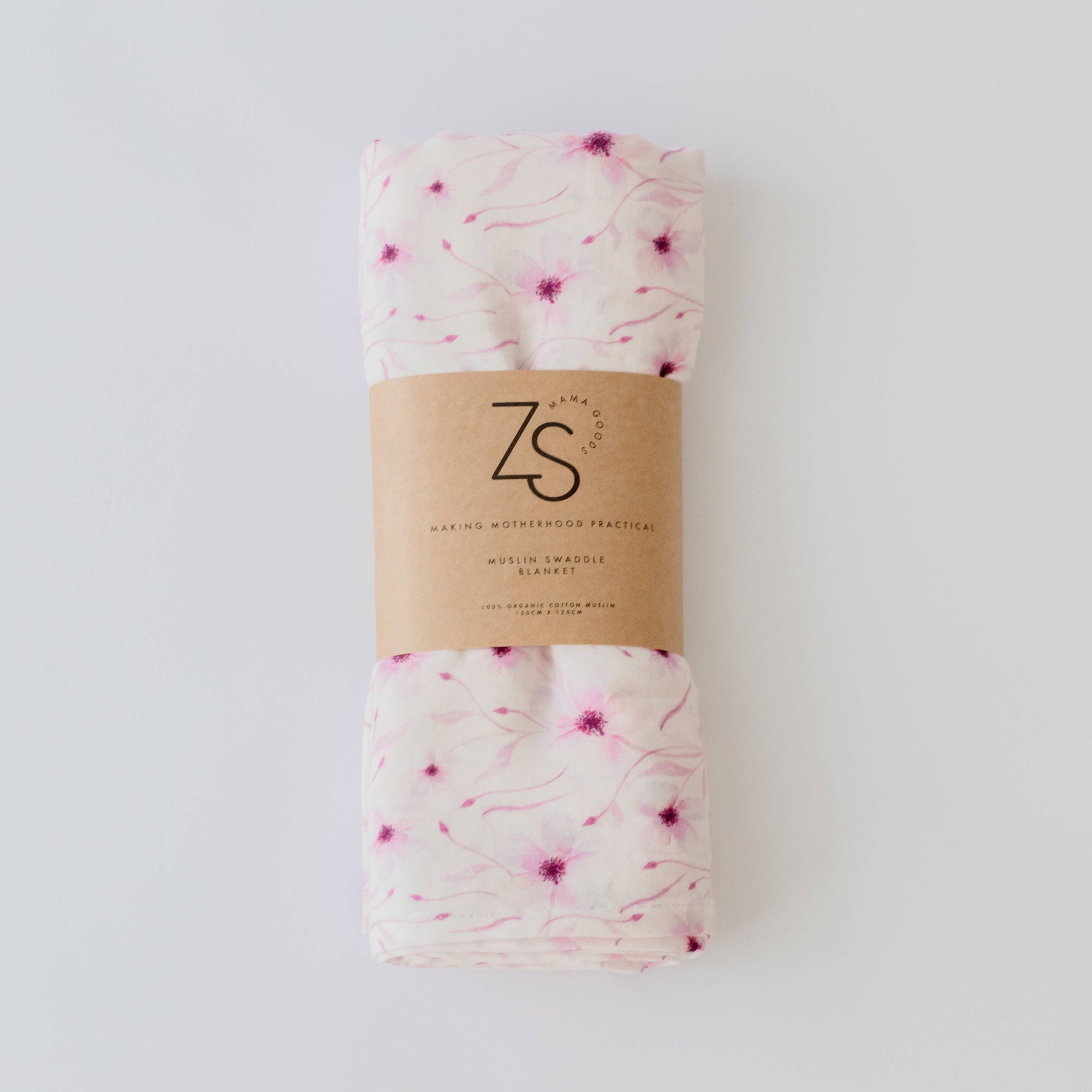 Organic Cotton Muslin Swaddle Wrap - Blushing Vine