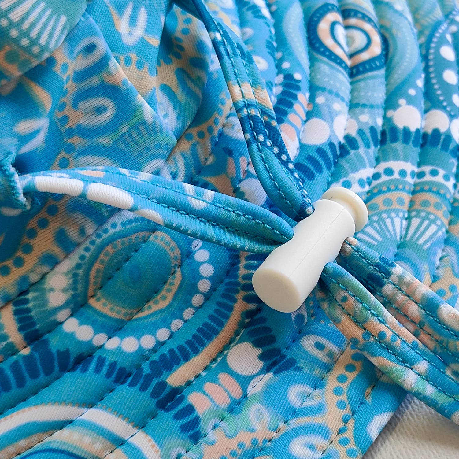 This Swim Hat features a wide brim, adjustable/removable chin strap and adjustable head circumference strap. This Swim Hat offers excellent sun protection for the face, neck and shoulders and is rated to UPF50+.