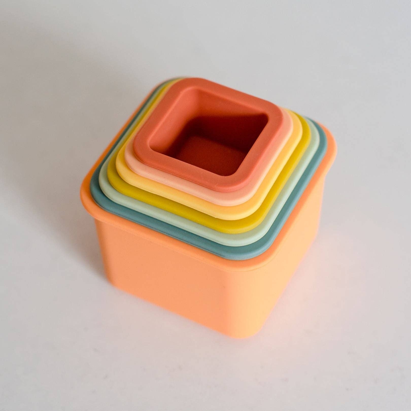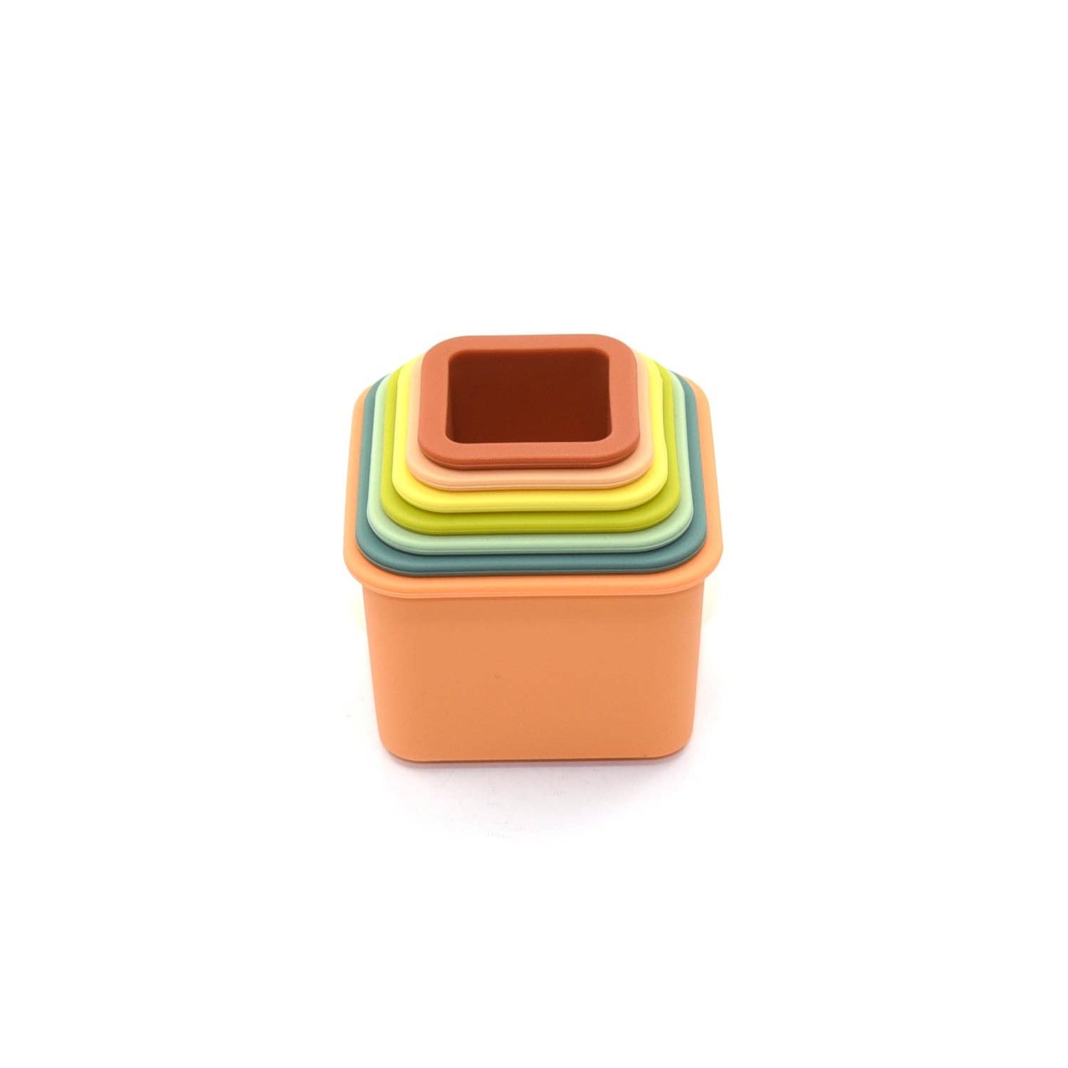 Our Square Silicone Stacking Cups are an open-ended toy designed to unleash creativity and imagination in your child. This versatile toy will encourage hand-eye coordination, creative thinking, and problem-solving skills. They will help improve dexterity and motor development. Made from Food Grade Silicone, our Round Stacking Cups are perfect for indoor and outdoor use.